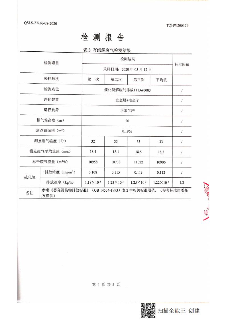 南通市康橋油脂有限公司4月份環(huán)境檢測報告