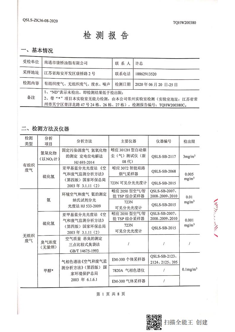南通市康橋油脂有限公司6月份環(huán)境檢測報告