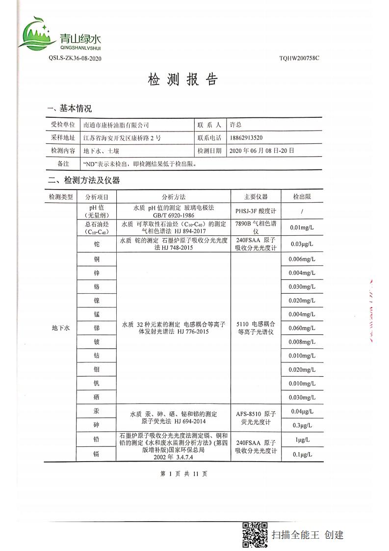 南通市康橋油脂有限公司7月份環(huán)境檢測(cè)報(bào)告
