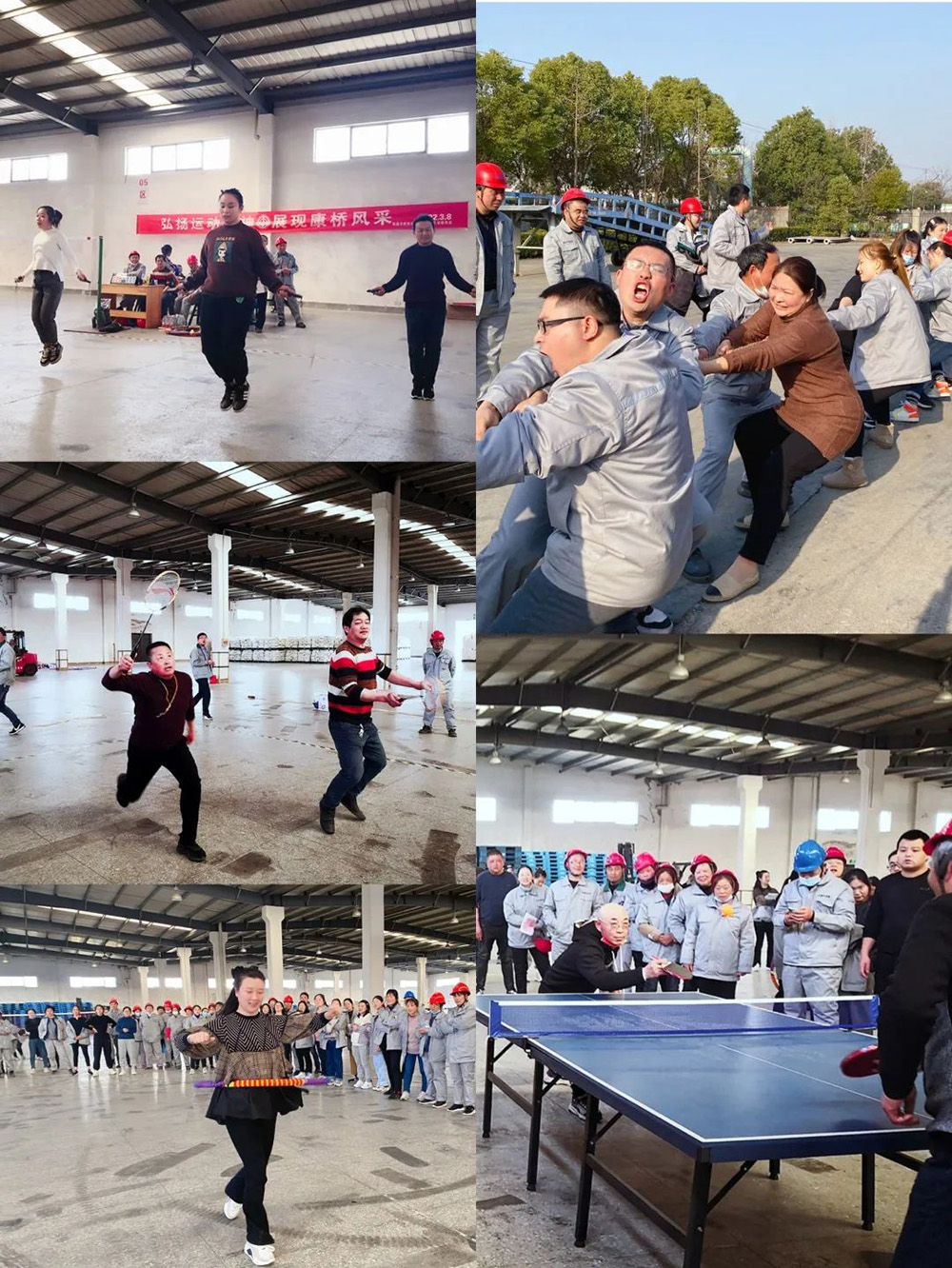 本次趣味運(yùn)動(dòng)會(huì)由公司工會(huì)組織,精心設(shè)計(jì)了6個(gè)競(jìng)賽項(xiàng)目,分別是:跳繩、乒乓球、2人綁腿短跑、羽毛球、呼啦圈、拔河比賽,比賽項(xiàng)目既有智慧和體力的角逐,更有團(tuán)結(jié)協(xié)作的完美比拼,大家積極踴躍的投身到活動(dòng)當(dāng)中,現(xiàn)場(chǎng)氣氛熱烈、和諧,吶喊、助威聲不絕于耳。